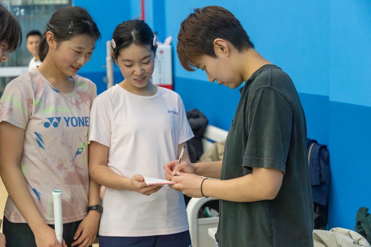 讲座结束后,华中师范大学与一附中羽毛球友谊赛在一附中气膜馆举行,比赛分为学生组与教师组进行,校长彭双阶、副校长周鹏程,一附中部分领导参加比赛。活动还特邀羽毛球世界冠军杜玥参赛并与师生开展交流。华中师范大学教职工羽毛球队代表和学生高水平羽毛球队的队员们,与一附中的师生代表展开激烈的羽毛球比拼,在切磋锻炼的同时,增进了彼此的交流与情谊,展现了师生顽强拼搏的良好风貌及“大华师”协同开展体育育人的成效。