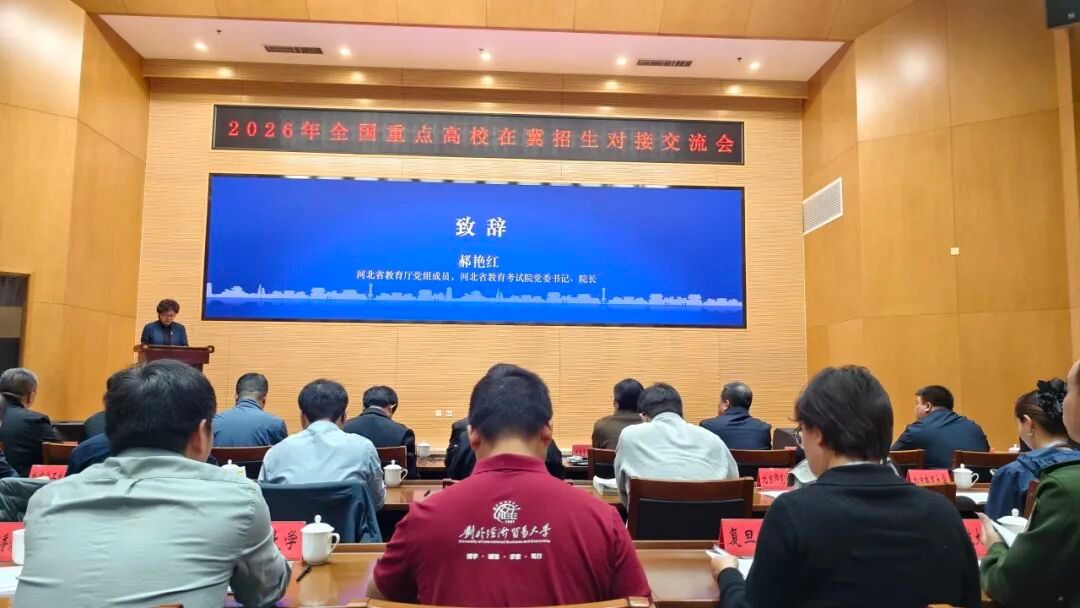 4月1日,河北省教育考试院在石家庄召开2026年全国重点高校在冀招生对接交流会。我校河北招生组、法学院王彦舒老师参会,与河北省51所重点中学校长共话招生合作,搭建精准对接桥梁。