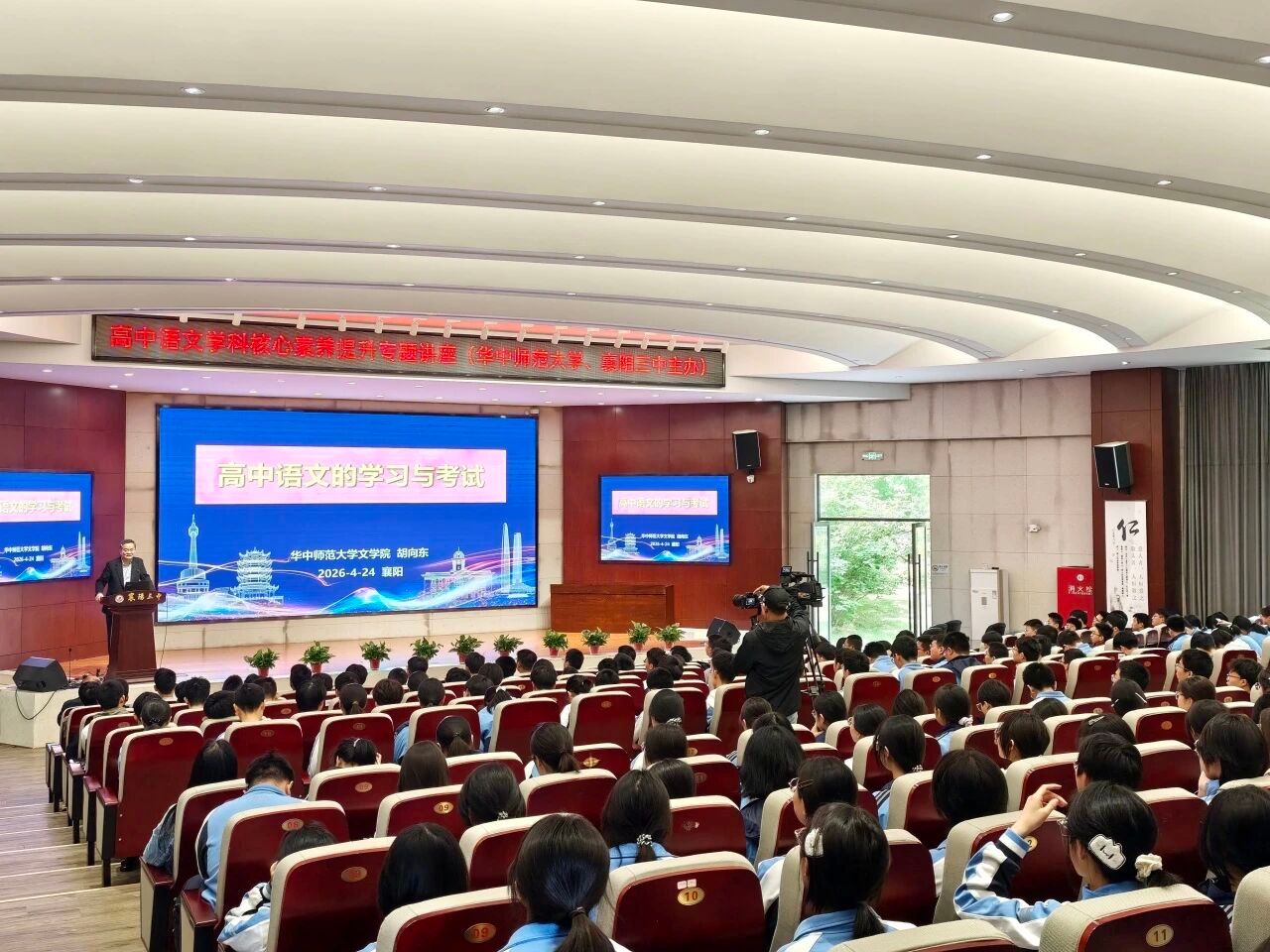 在襄阳一中和襄阳三中,胡向东教授面向两校师生做《高中语文学习与考试》讲座报告。他结合自身深厚的科研积淀与丰富的一线教学经验,系统解读高中语文学习的核心方法与高效考试策略,内容贴合学生实际、实用性极强,现场互动频繁、氛围热烈。