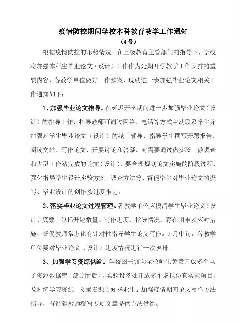 (作者:郝日虹 毛军刚 编辑:华轩)“我是从武汉回来的,必须自我隔离。因为担心自己和家人的健康,那段时间基本上没什么心思写论文。后来得知寒假后不能按时返校的消息,我又开始为查阅资料担心。再加上我是毕业论文小组组长,知道小组其他成员的写作进度,更让我为能否按时完成毕业论文多了一重忧虑。”文学院本科毕业生马达晟对毕业论文的焦虑是不少本科毕业生的缩影。一场突如其来的疫情,打乱了大家的写作节奏,在这个特殊的毕业季,如何确保4400余名本科毕业生如期交付学业答卷,成为学校、学院和老师们共同牵挂的事情。