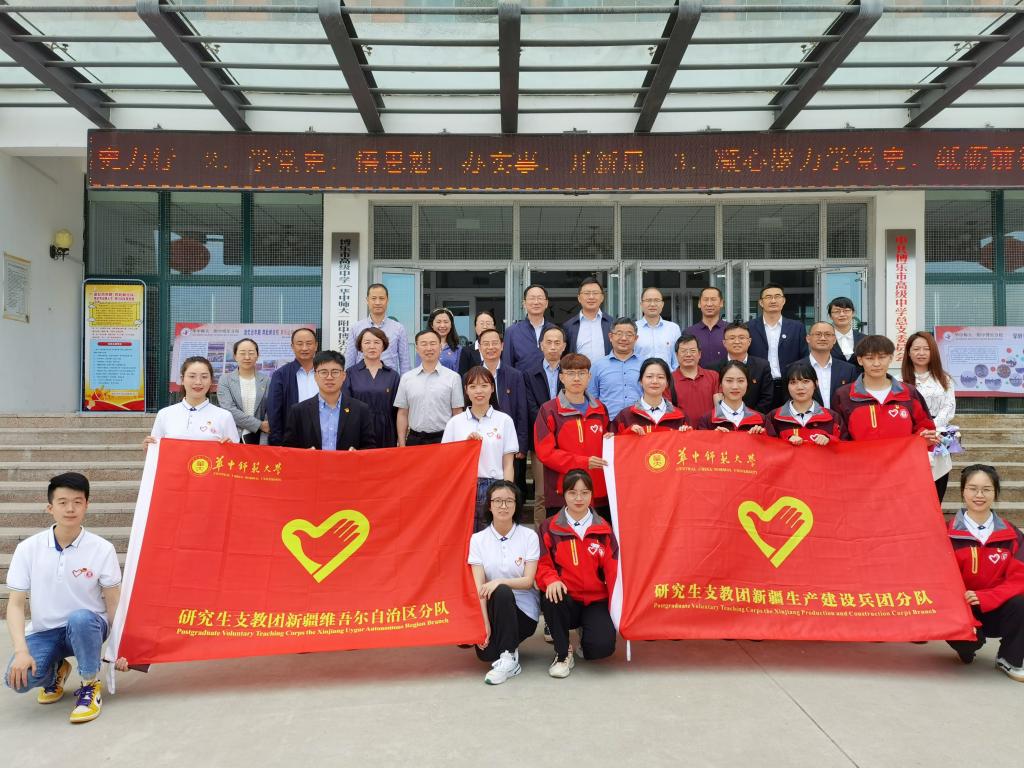 华大青年讯(通讯员 陈果 涂敏)2021年5月10日,校党委副书记查道林、校党委组织部部长郭方,生命科学学院院长邱保胜,校团委书记麻旎,华中师范大学第一附属中学副校长陶涛一行人赴新疆进行考察调研,期间看望了我校第22届研究生支教团新疆分队并召开座谈会。