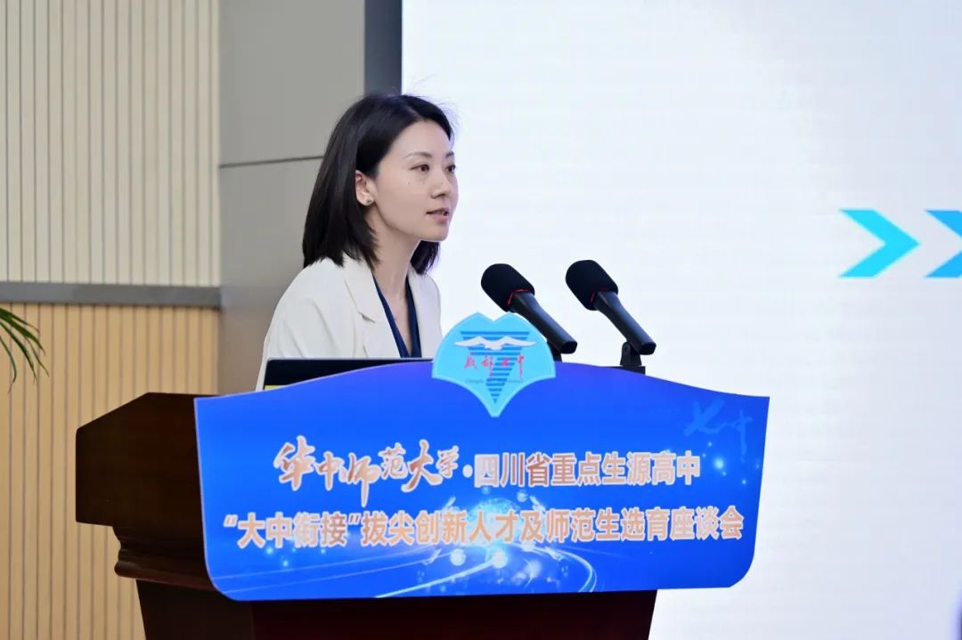 本科生院副院长、本科招生办公室主任李萌欣在会上介绍了学校本科招生政策和人才培养特色,并就我校2025年的在川招生工作及招生亮点进行了政策宣讲,期望进一步加强与生源中学在在高考志愿填报指导、拔尖创新人才及师范生高质量培养等方面的协同与合作,为国家培养更多优秀的高层次人才。