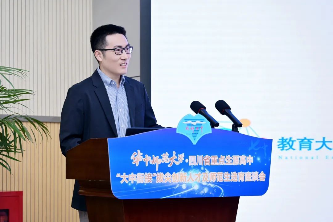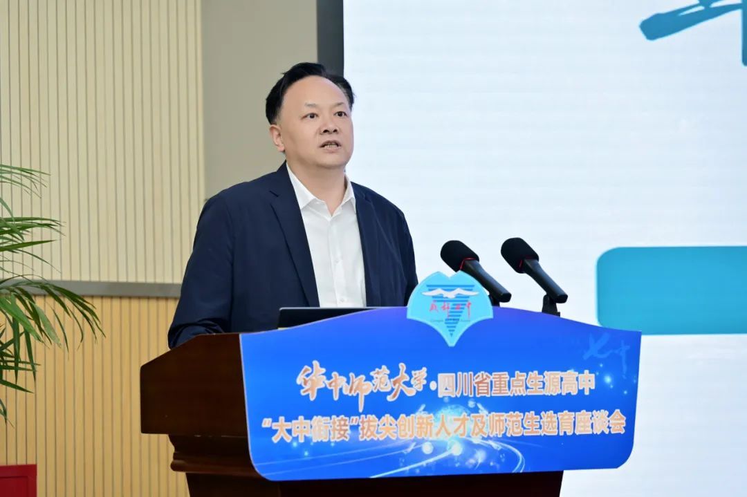 周鹏程在讲话中就我校办学历史、学科实力及发展潜力等进行了全面的介绍,着重讲解了学校高举师范教育旗帜、深化人才培养改革等方面的情况,以及在教育教学改革创新、教育数字化转型、本科人才培养成效等方面的重要成果。周鹏程表示,此次汇聚四川省各重点生源中学开展研讨,既是为了密切与各生源中学的联系,进一步创新招生宣传工作,也是对与中学共建“大中协同”拔尖创新人才选育新机制的探索,期待与各中学加强在教育教学研究、教师队伍培训、人工智能推进中学教育教学变革、师范生实习实践实训等方面的合作,进一步发挥部属师范大学对中学教育的引领作用。