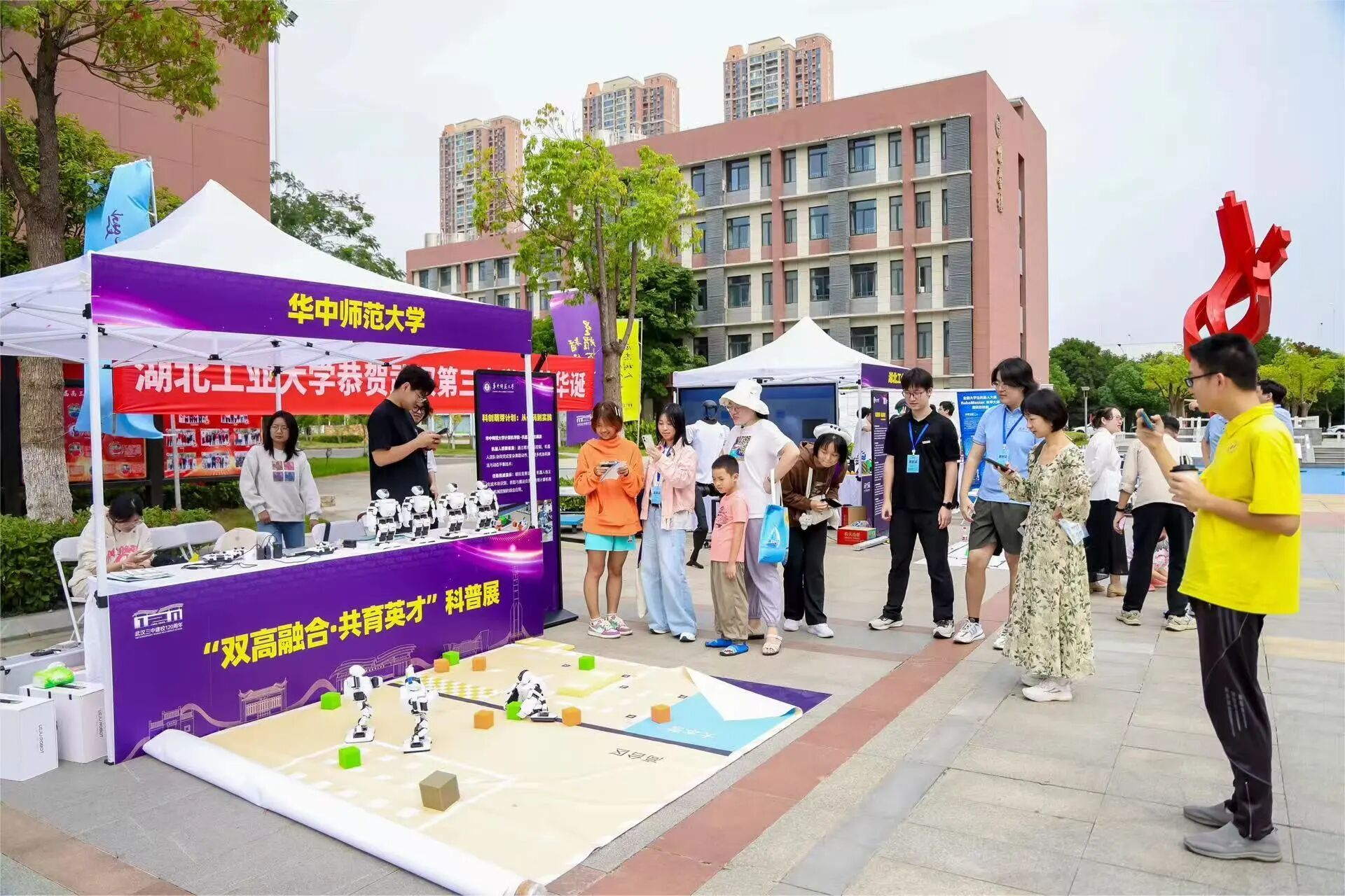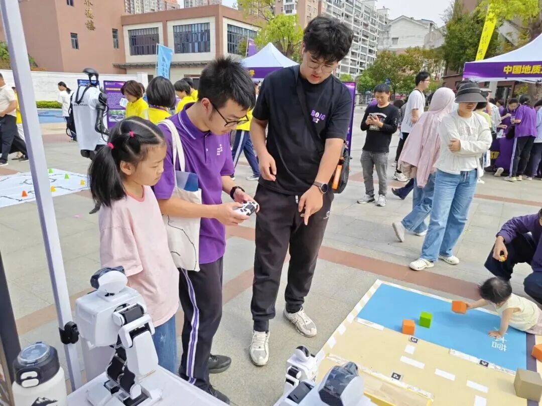 活动当天,在该校鼎新大道上的高校科普展区,人声鼎沸,热闹非凡。我校计算机学院物联网协会格物致知团队在姚华雄老师指导下通过实物陈列、动态演示与专业讲解相结合的方式,系统呈现了自主研发的机器人技术成果。