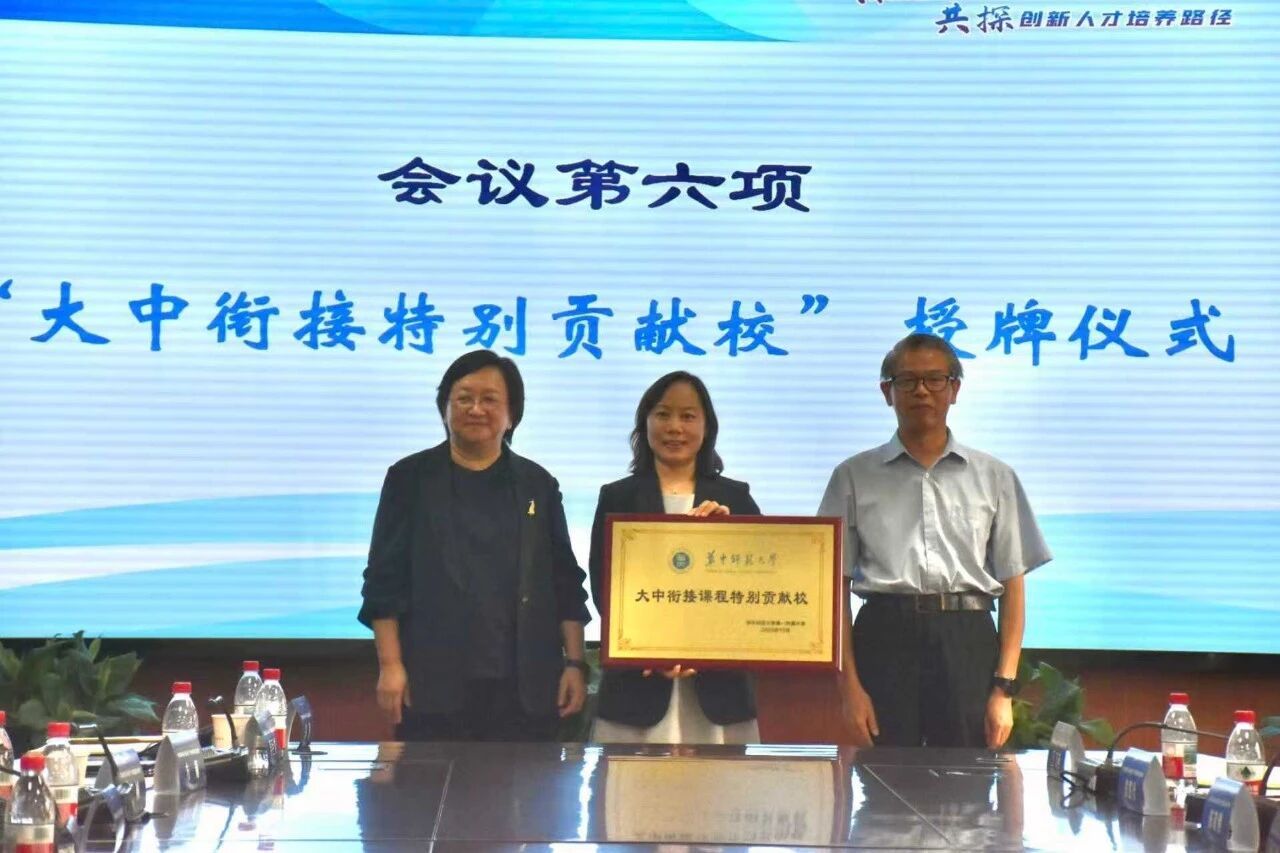 共同为我校颁发“大中衔接课程特别贡献校”牌匾