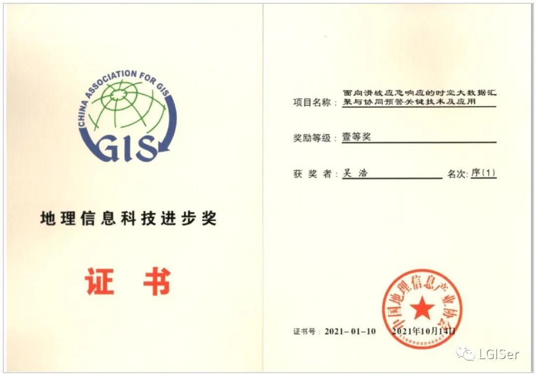 图4 指导自然地理和地理信息科学专业本科生获得2020 American Society for Photogrammetry and Remote Sensing (ASPS) (美国摄影测量与遥感学会)Talbert Abrams Grand Award(塔尔伯特·艾布拉姆斯奖)金奖,即特等奖