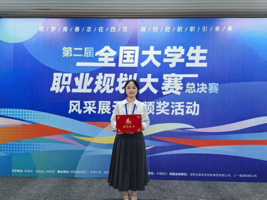 2025年4月,2022级特殊教育专业本科生叶柔妘获得第二届全国大学生职业规划大赛学生成长赛道高教组(金奖)