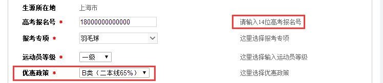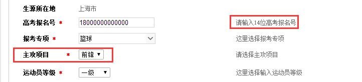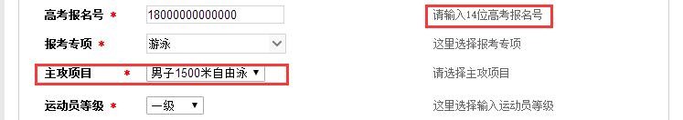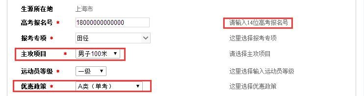 7.“田径”、“羽毛球”项目须选择优惠政策;“田径”、“篮球”、“游泳”项目须选择“主攻方向”。