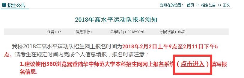 1. 使用360浏览器登录“华中师范大学本科招生网” 网上报名系统进行报名。