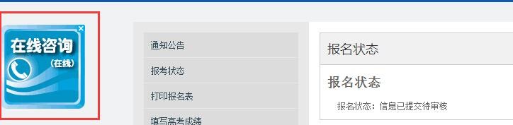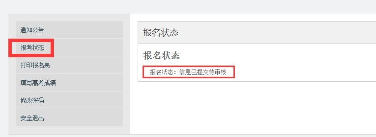15.点击左侧菜单栏“报考状态”,显示“信息已提交待审核”即为报名成功,请耐心等待审核结果。