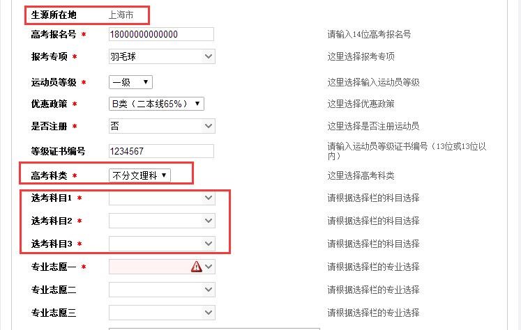 8.浙江、上海考生“高考科类”选定为“不分文理科”,须填写选考科目。