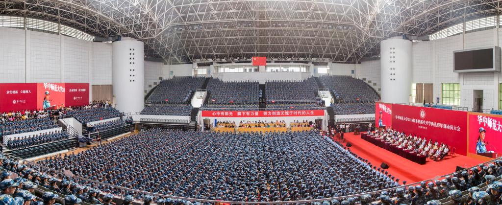 9月3日,华中师范大学2018级本科新生开学典礼暨军训动员大会在佑铭体育馆举行。全体校领导、空军预警学院全体承训官兵、学校各职能部门及学院主要负责人出席。2018级全体新生和部分教师代表参加。典礼由校党委副书记覃红主持。