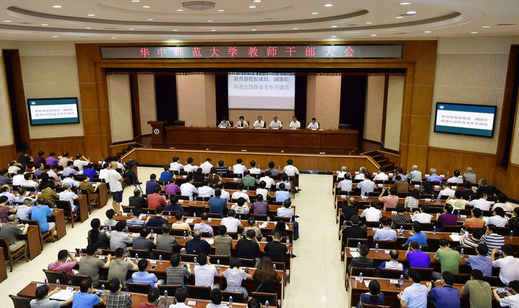 7月15日,我校在科学会堂召开全校教师干部大会,宣布教育部党组任免决定:赵凌云同志任华中师范大学校长、党委副书记;杨宗凯同志不再担任华中师范大学校长、党委副书记。