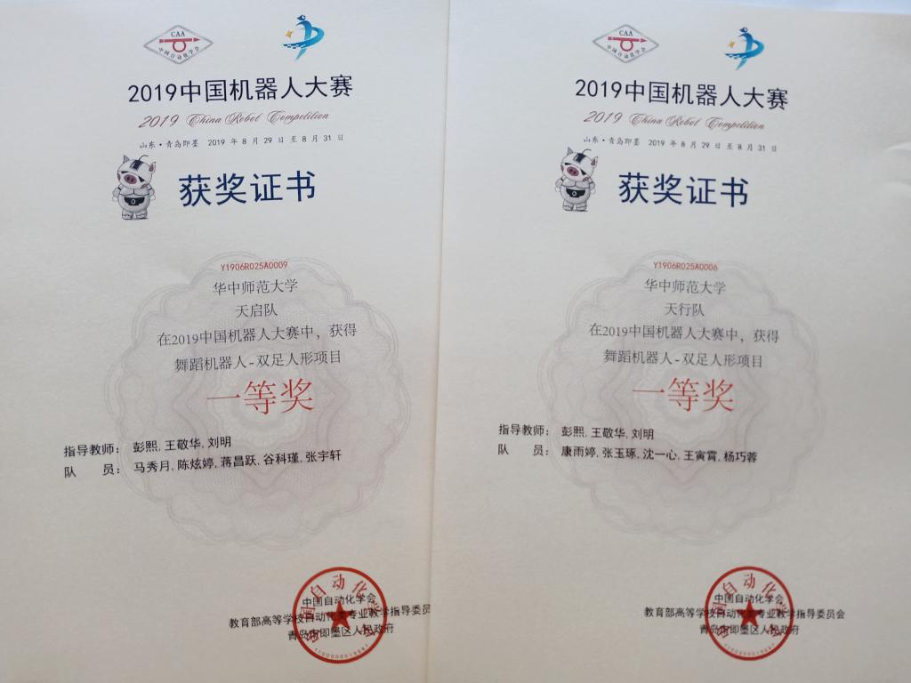 华大在线(通讯员 张宇轩 邹梓怡)8月30日,由中国自动化学会与青岛市即墨区政府共同主办的2019中国机器人大赛在青岛即墨创智中心体育场拉开帷幕。华中师范大学选派两组代表队参加舞蹈机器人双足人形项目,经过激烈的角逐,两组代表队均获得一等奖。