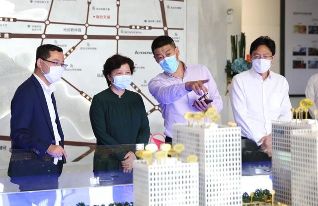 座谈会后,在洪山区区委常委、常务副区长张健陪同下,校领导一行调研了融创智谷、武汉创意天地游戏产业大厦。