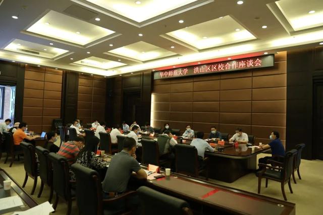 座谈会上,郝芳华表示,华师非常感谢洪山区政府在抗击疫情的特殊时期协调多个部门对接解决华师的困难,学校将与洪山区抓住机遇,长远谋划,及时推进,搭建共生共赢的区校合作新模式。一方面,希望区政府助力华师做好雨污分流、周边环境治理,解决土地发展空间受限等历史遗留问题,双方携手积极申报国家创新中心,建设大数据工业研究院,合力打造智慧之城。另一方面,华师也将积极做好社会服务,与洪山区共同推动区域经济发展、招商引智、招商引才,将优质教育资源引入洪山区,推动一体化基础教育体系,落实好附属中学建设,提升洪山基础教育质量,同时依托华师“人工智能+教育”的优势推动洪山区智慧教育产业发展。
