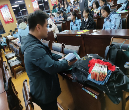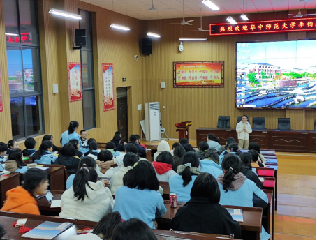 会场上,李钧鹏教授向在场同学们宣传了我校的招生政策,并鼓励同学们积极报考华中师范大学,他指出,华师也拥有丰厚的历史底蕴和丰富的学科领域,欢迎同学们来华师探索学术,学习成长。随后,给在场同学们赠送了华师的纪念书签。讲座在同学们的热烈掌声中结束。