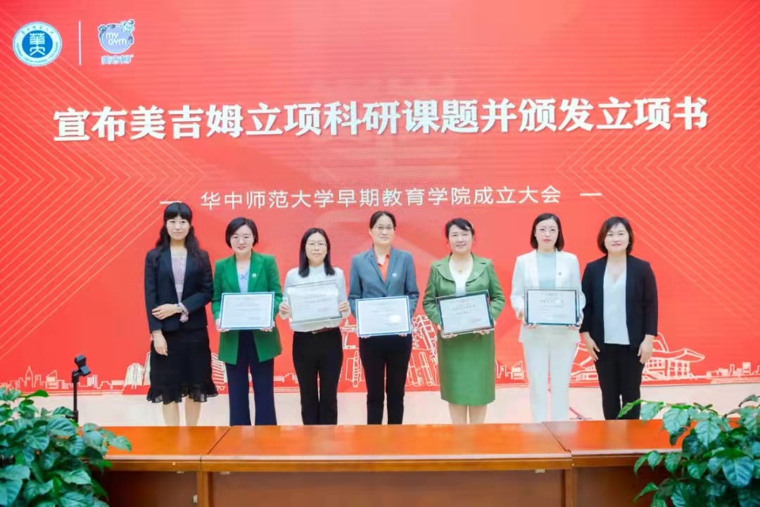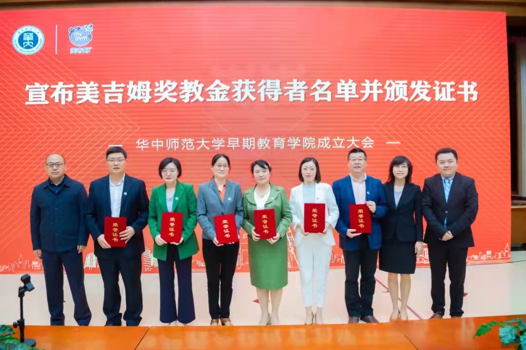 成立大会期间,举行了“华中师范大学早期教育学院实习基地”授牌仪式,并为双方相关人员颁发聘书。双方有关负责人分别为教育学院师生代表颁发美吉姆奖教金证书、美吉姆奖助学金证书及美吉姆科研课题立项书。