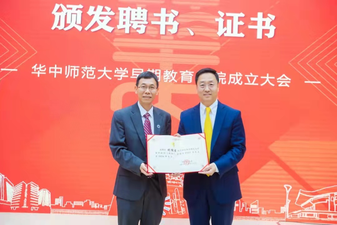 (记者 郝日虹 见习记者 范书妍)5月20日,华中师范大学早期教育学院成立大会在科学会堂一楼报告厅举行。中植企业集团董事局主席兼首席执行官解直锟、中植企业集团首席风控官颜茂昆、中植企业集团财富管理官武建华、大连美吉姆教育科技股份有限公司董事长刘俊君,校党委书记赵凌云、校长郝芳华、校党委副书记查道林、副校长李鸿飞、校党委副书记陈迪明等出席。解直锟和郝芳华共同为“早期教育学院”揭牌。大会由陈迪明主持。