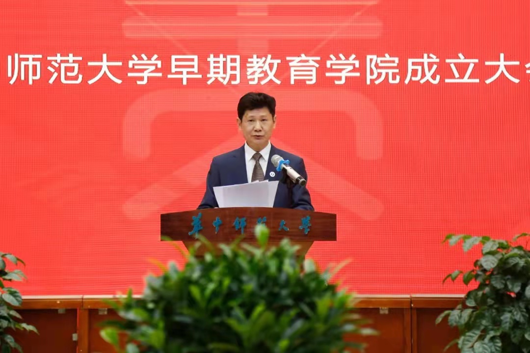 赵凌云在致辞中指出,5月20日是一个有“爱”的日子,早期教育学院今天揭牌,充分体现了中植集团对华师的厚爱,华师对教育学科发展的挚爱以及双方对教育事业的大爱。我校学前教育专业始建于1958年,经过杨爱华、李宁达、杨竹生、喻本伐等几代人的努力奋斗,本科人才培养走上国际化道路,呈现出多元化办学特点,形成了本、硕、博多层次人才培养体系。早期教育学院成立后,将围绕儿童早期教育问题,在人才培养、科学研究、社会服务、文化传承与创新等方面,与中植集团开展产学研教一体化校企战略合作,必将推进国家早期教育事业发展。从学前教育到早期教育,体现了党和国家教育理念的重大变革,体现了现代教育体系的新布局,也体现了华师教育创新的责任担当。