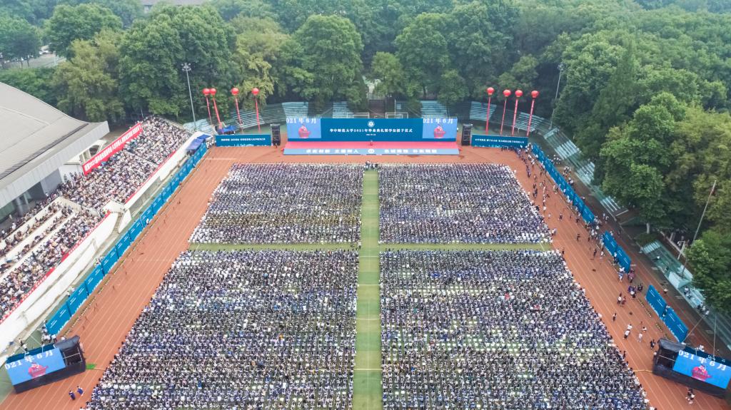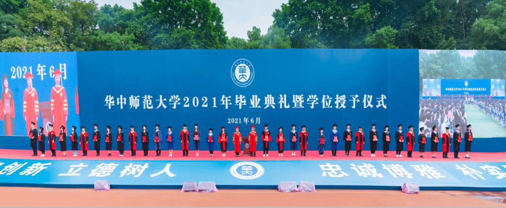 (记者 郝日虹)6月13日,华中师范大学2021届毕业典礼暨学位授予仪式在佑铭体育场隆重举行。校党委书记赵凌云,校长、党委副书记郝芳华,校党委副书记查道林,副校长彭南生,副校长夏立新,校党委副书记、纪委书记陈厚丰,副校长任友洲,副校长彭双阶、副校长李鸿飞,校党委副书记陈迪明以及学校学术委员会代表、教职员工代表、各职能部门和学院党政负责人,与8950名2021届毕业生、2234名重返校园的2020届同学、3024名家长共同出席我校史上最大规模的毕业典礼,见证这一难忘时刻。毕业典礼由彭双阶主持。