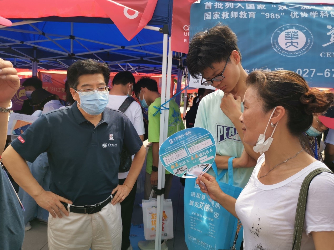 彭双阶一行先后来到襄阳四中、孝感高中招生宣传点,对驻点工作人员进行慰问鼓励,现场接待前来咨询的考生及家长,耐心解读我校招生政策。
