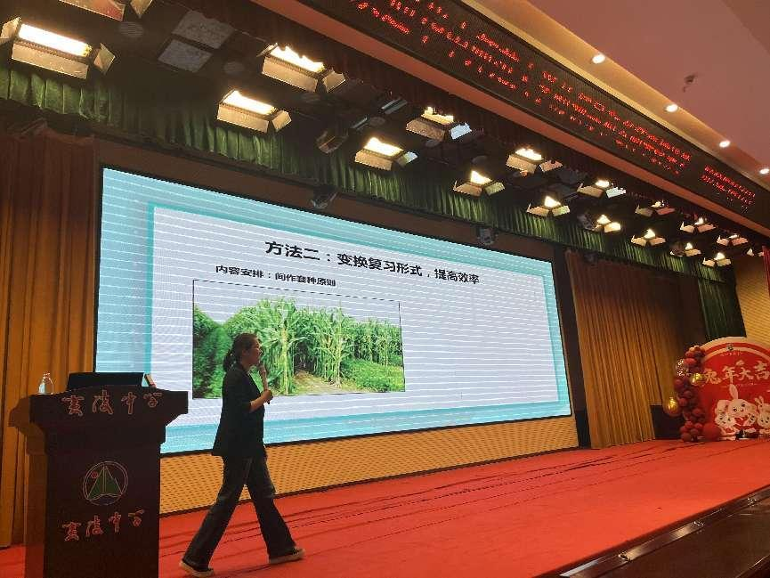 招生办李萌欣老师向同学们介绍了华中师范大学的办学历史、知名校友、学科建设、师资力量、校园环境等内容,并预祝同学们高考顺利,现场反响热烈。