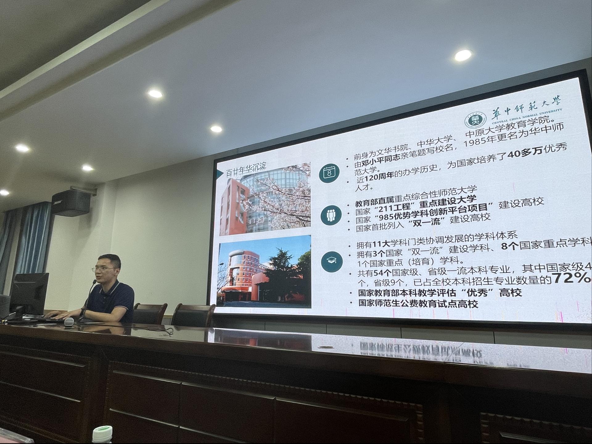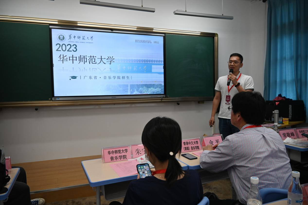 5月19日晚,华中师范大学优质生源基地授牌仪式在南海艺术高中举行,南海艺术高中副校长张云生等校领导及高一年级全体音乐、舞蹈学生参加。张云生介绍了学校办学基本情况及招生、高考录取情况,他表示,希望今后能加快构建基础教育和高等教育衔接贯通机制,建立基础教育与高等教育协同育人共同体。华中师范大学音乐学院舞蹈系主任朱宇翔宣读授牌决定,并授予南海艺术高中“优质生源基地”牌匾。随后,付彪从学校简介、学院情况、办学特色及招生政策等方面介绍了华中师范大学,并与现场师生交流了学校今年在粤招生计划和分数,现场反响热烈。