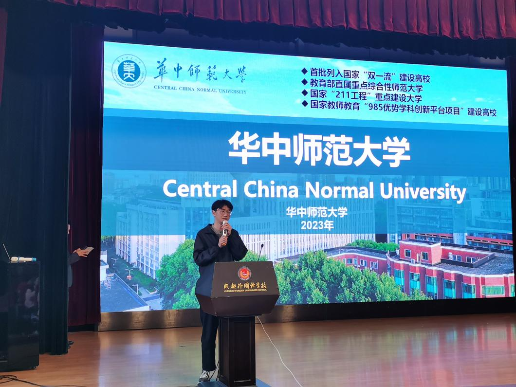 在成都外国语学校和成都新世纪光华学校,工作组面向高三学生和家长开展了两场公开宣讲,会场座无虚席。宣讲会上,王棣用自己的求学故事引入主题,讲述了十年前作为四川高考生考入华中师范大学,十年的变化和成长让他由衷感恩学校。王棣向学生及家长全面介绍了学校的校情校史、人才培养、科研实力、教师教育特色及本科招生政策,同时针对公费师范生、优师计划等咨询热点问题做出回答,解答了家长学生的报考困惑。
