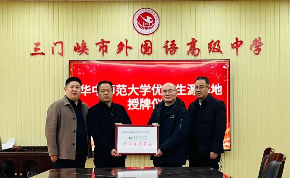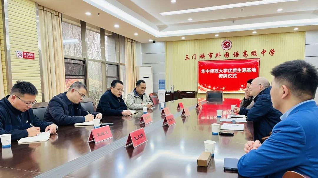 3月23日下午,华中师范大学优质生源基地授牌仪式在三门峡市外国语高级中学举行。我校代表一行与三门峡外高校长王臣、副校长赵建强等举行座谈,并进行“优质生源基地”授牌。