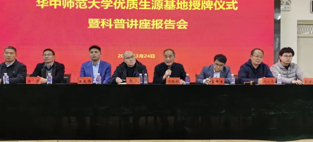 3月24日,河南科技大学附属高级中学举行华中师范大学优质生源基地授牌仪式。该校党委书记、校长付耙牯,副校长梁金贵、副校长胡建伟、副校长包聚广、副校长王诗越、副校长陈利峰等出席。原弘授予河科大附中“优质生源基地”牌匾。