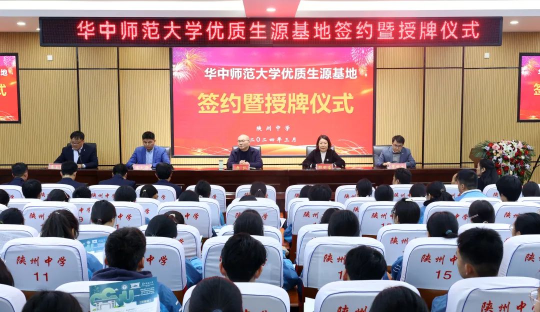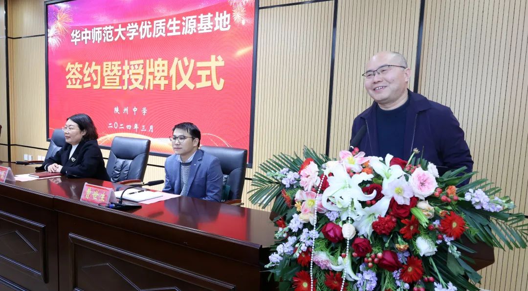3月23日上午,华中师范大学优质生源基地签约暨授牌仪式在陕州中学举行。陕州中学校长程昕蕾出席本次签约仪式,副校长李玉强主持。原弘教授与程昕蕾校长共同签署了共建优质生源基地的协议书,并授予陕州中学“优质生源基地”牌匾。《三门峡新闻联播》报道本次活动。
